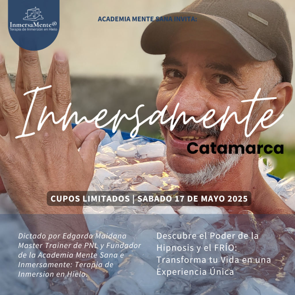InmersaMente Catamarca es una experiencia transformadora de medio día que fusiona hipnosis, respiración consciente e inmersión en hielo para ayudarte a reconectar con tu poder interior, reducir el estrés y superar tus límites mentales, físicos y emocionales.